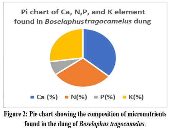 ![]() | Figure 2: Pie chart showing the composition of micronutrients found in the dung of Boselaphus tragocamelus.