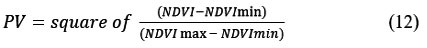 Land surface emissivity is a proportion of vegetation, which is calculated using equation 11.