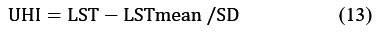 The UHI is estimated as Eq. 13,