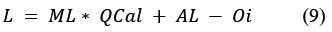 For Landsat 8 OLI, the spectral radiance is estimated by equation 9