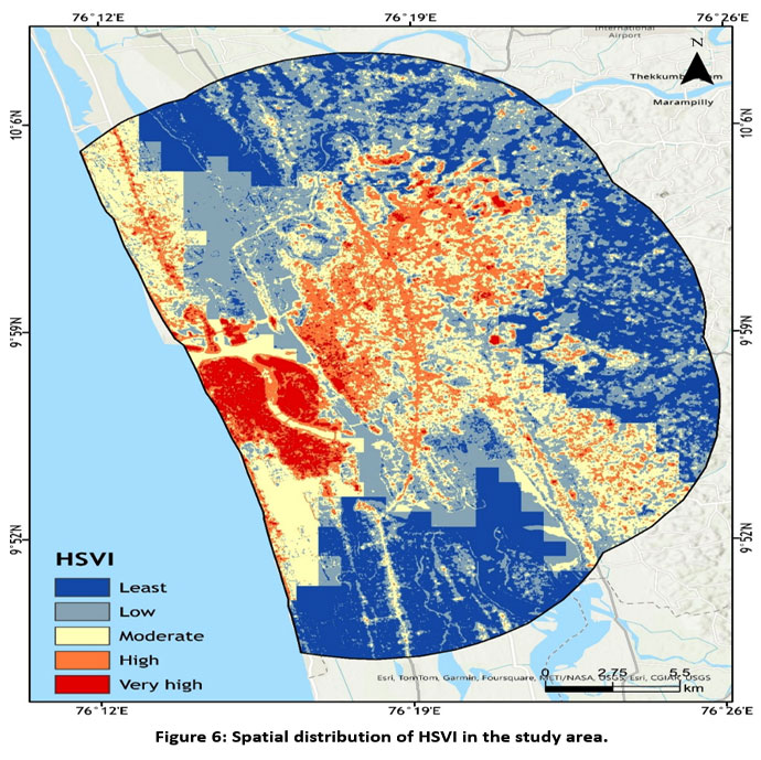 ![]() | Figure 6: Spatial distribution of HSVI in the study area.