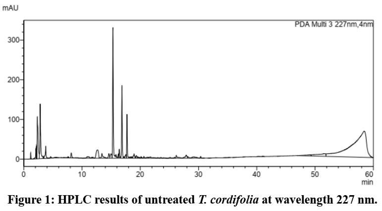 Figure 1: HPLC results of untreated T. cordifolia at wavelength 227 nm.