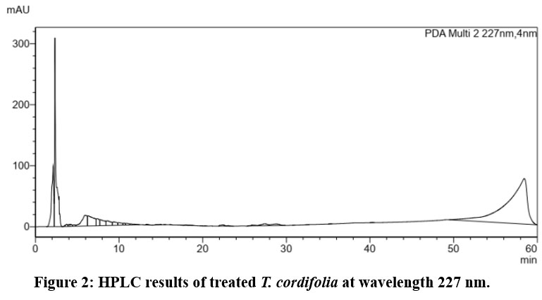 Figure 2: HPLC results of treated T. cordifolia at wavelength 227 nm.