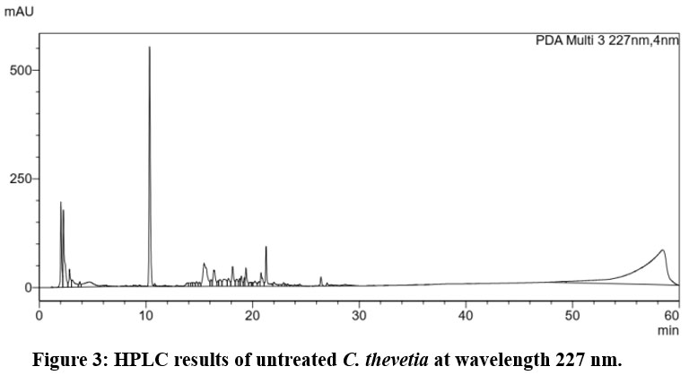Figure 3: HPLC results of untreated C. thevetia at wavelength 227 nm.