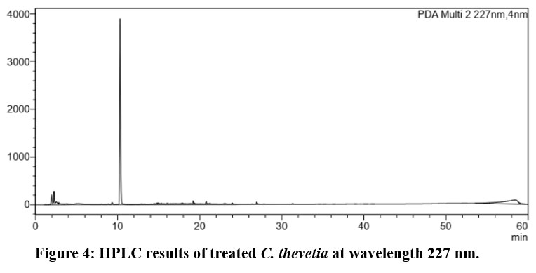Figure 4: HPLC results of treated C. thevetia at wavelength 227 nm.