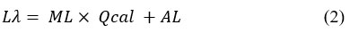Where, Lh= Spectral radiance (TOA), ML= Radiance multiplicative Band, AL= Radiance Add band, Qcal= Quantized and calibrated standard product pixel values (DN) of thermal band.
