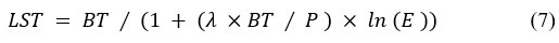 Here, BT = Brightness temp. (°C), h = Wavelength emitted radiance, E = Emissivity.
