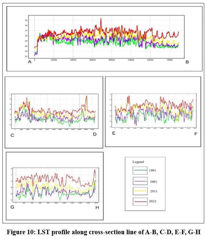 ![]() | Figure 10: LST profile along cross-section line of A-B, C-D, E-F, G-H