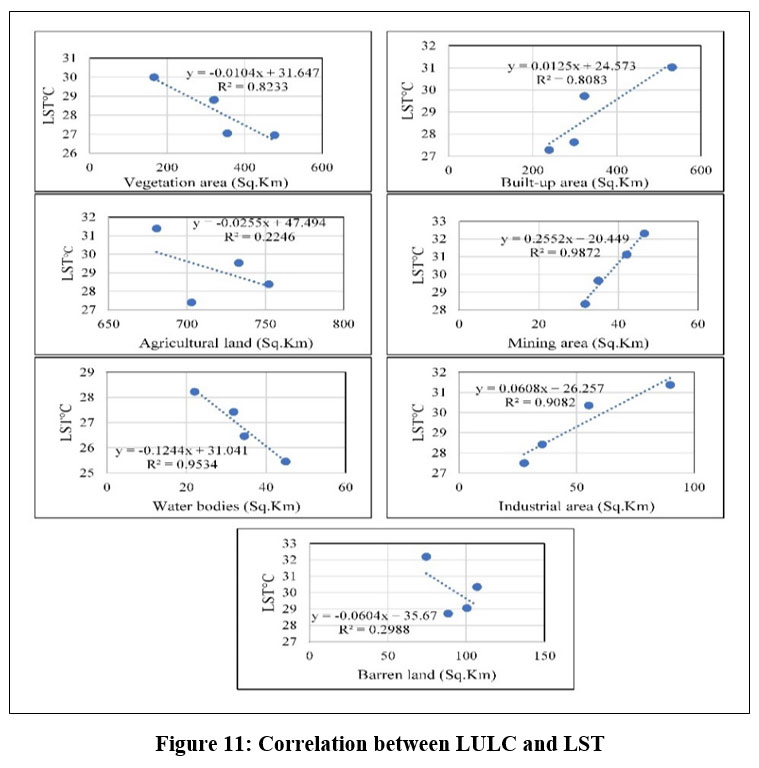 ![]() | Figure 11: Correlation between LULC and LST