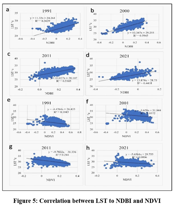 Table 5: LULC and LST distribution from 1991 to 2021