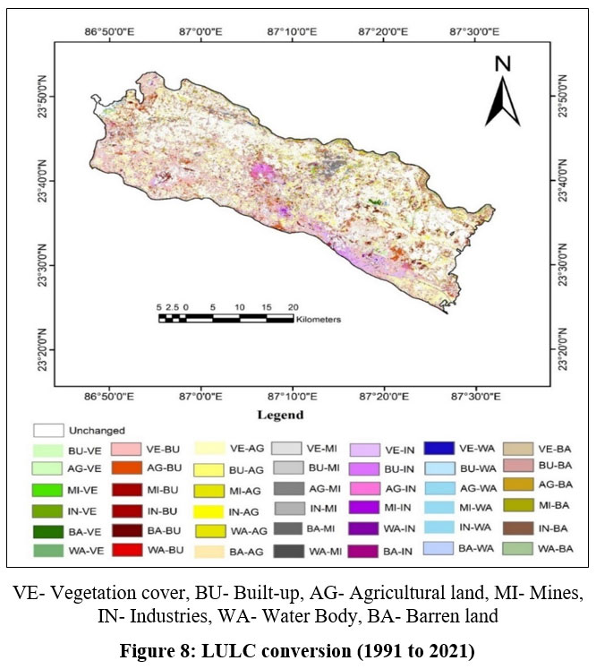 ![]() | Figure 8: LULC conversion (1991 to 2021)