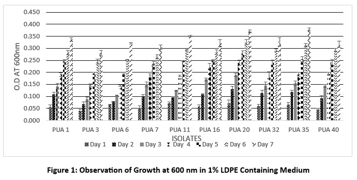 ![]() | Figure 1: Observation of Growth at 600 nm in 1% LDPE Containing Medium