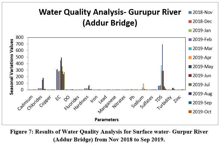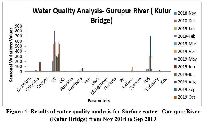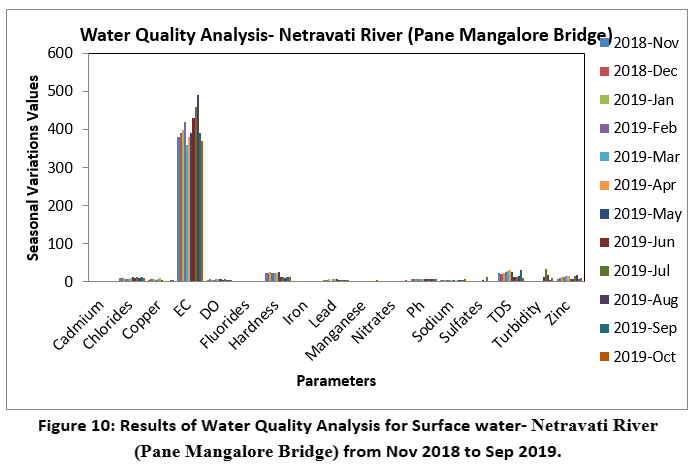 ![]() | Figure 10: Results of Water Quality Analysis for Surface water- Netravati River (Pane Mangalore Bridge) from Nov 2018 to Sep 2019.