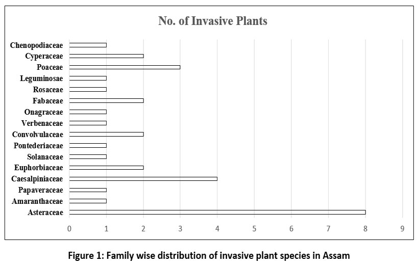 ![]() | Figure 1: Family wise distribution of invasive plant species in Assam