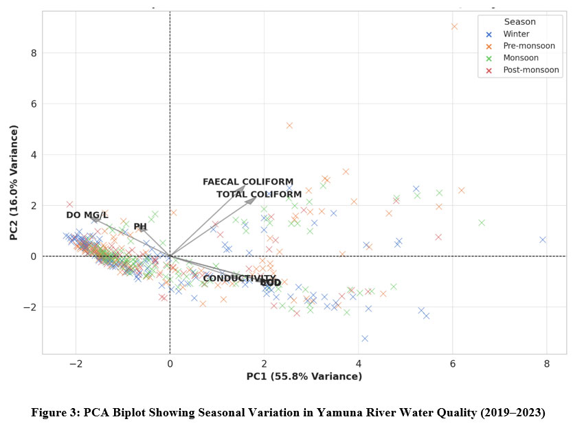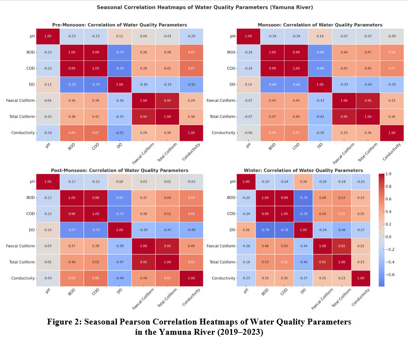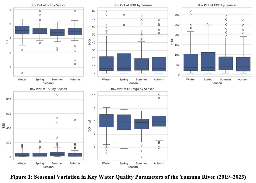 Figure 1: Seasonal Variation in Key Water Quality Parameters of the Yamuna River (2019–2023).
